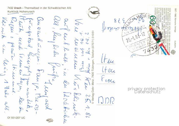 72650886 alte Postkarte Bad Urach Kurklinik Hohenurach Thermalbad Schwaebische Alb postalisch gelaufen Erhaltung siehe scans [FriedD77] KatCode: 11110008415078