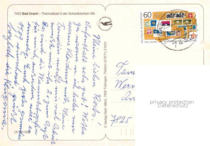 72926033 alte Postkarte Bad Urach Markt Schlossplatz Brunnen Wasserfall postalisch gelaufen Erhaltung siehe scans [WerneD78] KatCode: 11110008415078