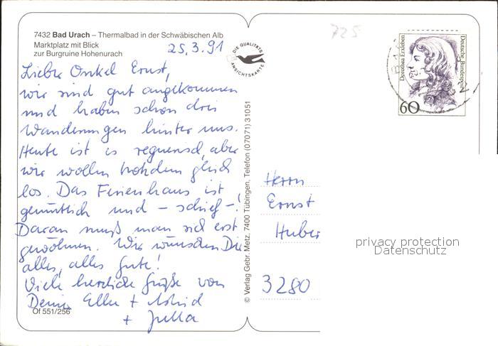 72606689 alte Postkarte Bad Urach Marktplatz Burgruine Hohenurach postalisch gelaufen Erhaltung siehe scans [NatalD47] KatCode: 11110008415078
