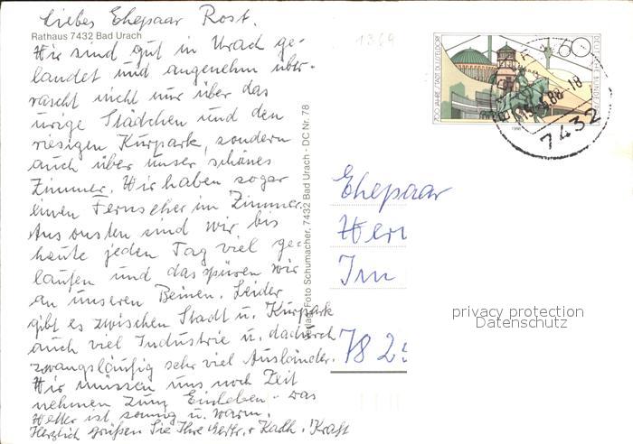 72177955 alte Postkarte Bad Urach Rathaus postalisch gelaufen Erhaltung siehe scans KatCode: 11110008415078