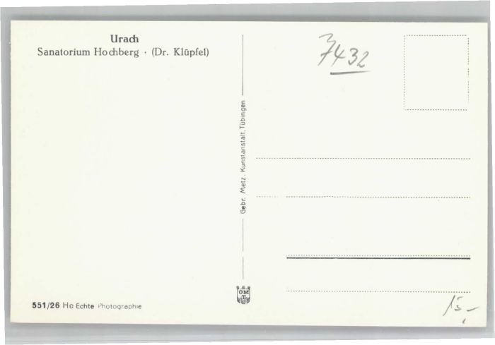 40711296 Bad Urach Sanatorium Hochberg KatCode 11110008415078