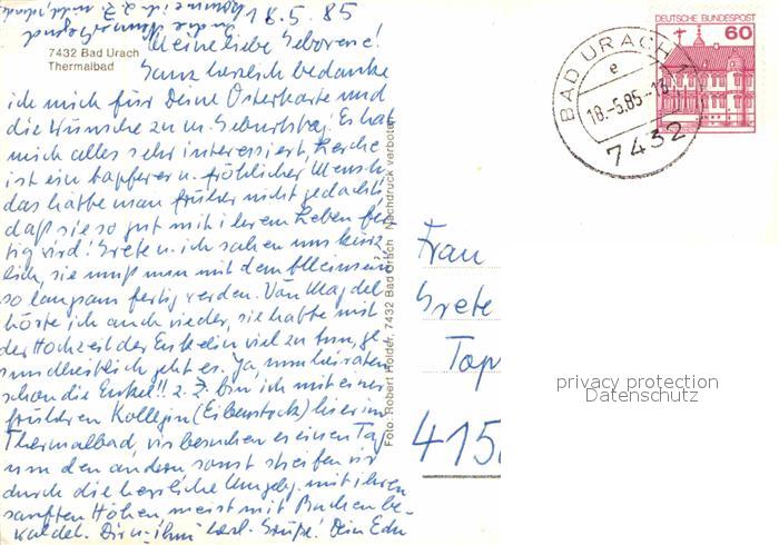 72839960 alte Postkarte Bad Urach Thermalbad postalisch gelaufen Erhaltung siehe scans [LiesaD40] KatCode: 11110008415078