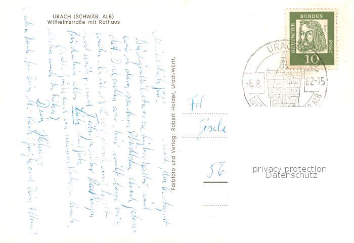 72991355 alte Postkarte Bad Urach Wilhelmstrasse mit Rathaus postalisch gelaufen Erhaltung siehe scans [WerneD78] KatCode: 11110008415078