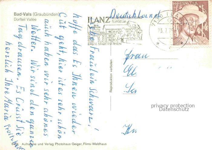 14109274 Bad Vals Surselva GR Panorama postalisch gelaufen Erhaltung siehe scans [FriedD77] alte Postkarte Frie Katcode 11470100355546