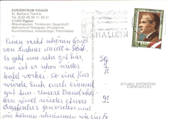 71928550 alte Postkarte Bad Vigaun Kurzentrum Heilbad St Barbara Therme postalisch gelaufen KatCode: 11390323050213