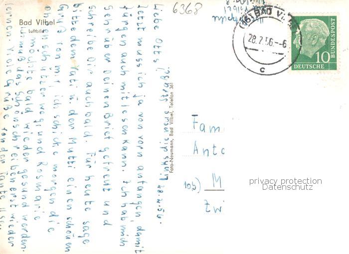 73853540 alte Postkarte Bad Vilbel Fliegeraufnahme postalisch gelaufen Erhaltung siehe scans [FriedD77] KatCode: 11110006440003