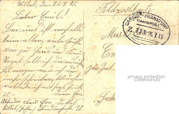 32099430 alte Postkarte Bad Vilbel Kriegerdenkmal Victoria-Molita-Sprudel Bahnpost-Stempel postalisch gelaufen Feldpost Erhaltung siehe scans KatCode: 11110006440003