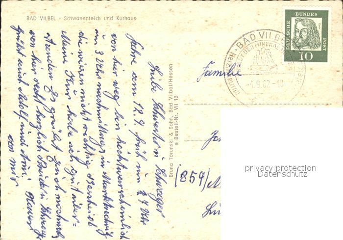 72007451 alte Postkarte Bad Vilbel Schwanenteich am Kurhaus postalisch gelaufen Erhaltung siehe scans KatCode: 11110006440003