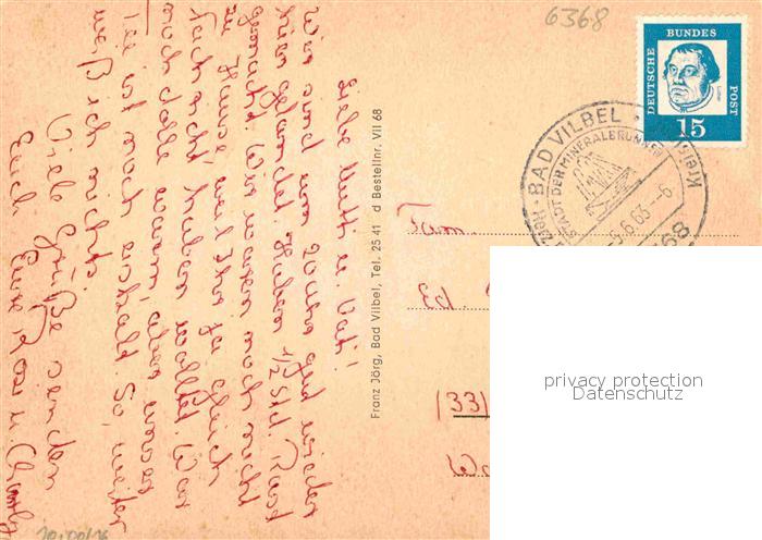 72915312 alte Postkarte Bad Vilbel Teilansicht Fachwerkhaus Schwimmbad postalisch gelaufen Erhaltung siehe scans [WerneD78] KatCode: 11110006440003