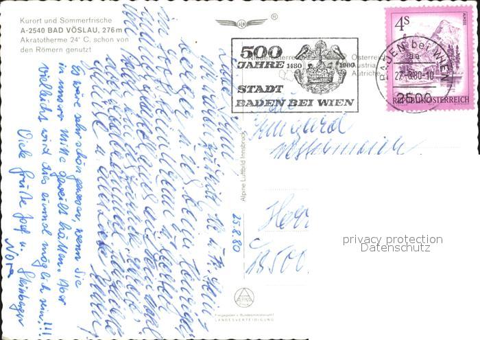 72469824 alte Postkarte Bad Voeslau Akratotherme Fliegeraufnahme postalisch gelaufen Erhaltung siehe scans KatCode: 11390127030603