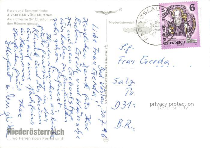 72377696 alte Postkarte Bad Voeslau Fliegeraufnahme postalisch gelaufen Erhaltung siehe scans KatCode: 11390127030603