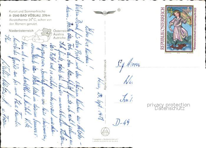 72534349 alte Postkarte Bad Voeslau Fliegeraufnahme Kurgebiet postalisch gelaufen Erhaltung siehe scans [LiesaD40 kt120box] KatCode: 11390127030603