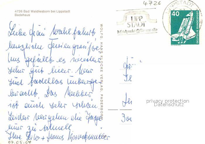 72910181 alte Postkarte Bad Waldliesborn Badehaus postalisch gelaufen Erhaltung siehe scans [FriedD77] KatCode: 11110005974028