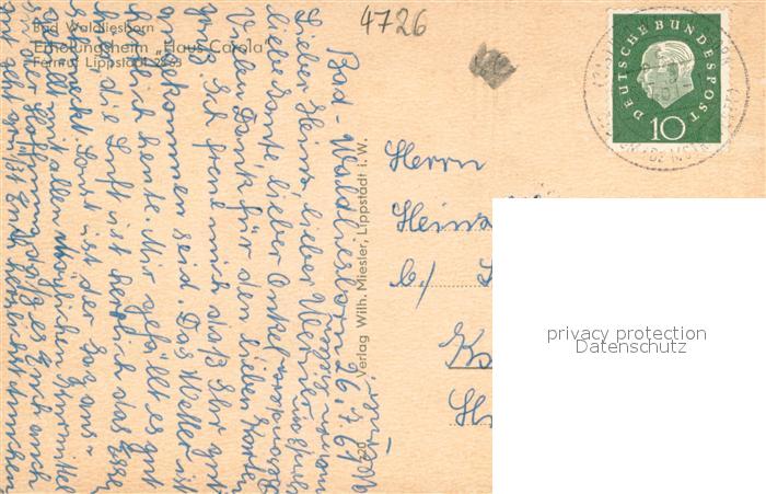 73690070 alte Postkarte Bad Waldliesborn Erholungsheim Haus Carola postalisch gelaufen Erhaltung siehe scans [FriedD77] KatCode: 11110005974028