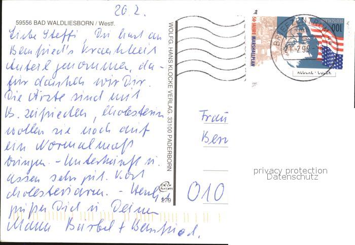 72408343 alte Postkarte Bad Waldliesborn Eulenpark Kurzentrum Kurpromenade Thermalsolebad Kurklinik Panorama Wassergarten postalisch gelaufen Erhaltung siehe scans KatCode: 11110005974028
