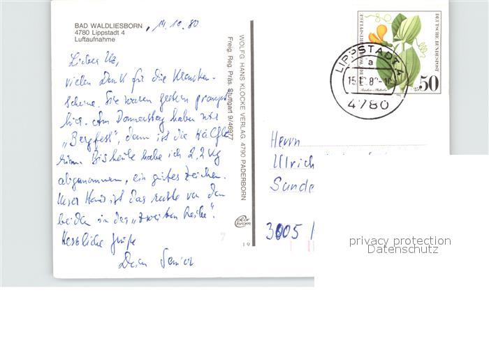 72533795 alte Postkarte Bad Waldliesborn Fliegeraufnahme postalisch gelaufen Erhaltung siehe scans [LiesaD40 kt094box] KatCode: 11110005974028