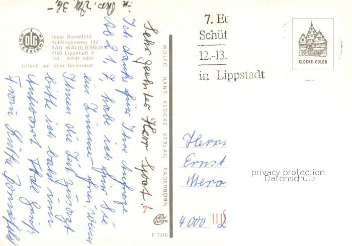 73661906 alte Postkarte Bad Waldliesborn Gaestehaus Pension Haus Bornefeld postalisch gelaufen Erhaltung siehe scans [FriedD77] KatCode: 11110005974028