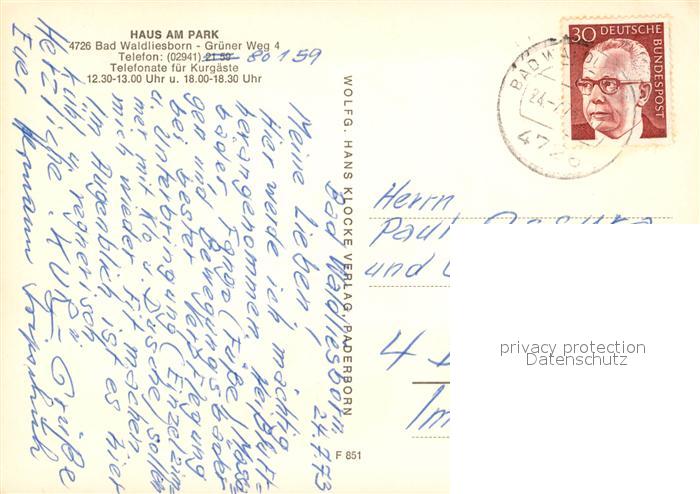 73103496 alte Postkarte Bad Waldliesborn Haus am Park postalisch gelaufen Erhaltung siehe scans [KathaD81] KatCode: 11110005974028