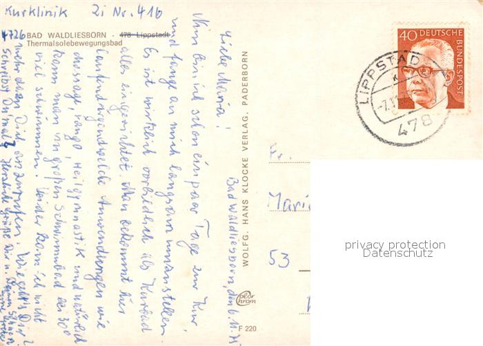 73166932 alte Postkarte Bad Waldliesborn Kur Bewegungszentrum postalisch gelaufen Erhaltung siehe scans [KathaD81] KatCode: 11110005974028