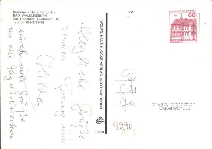72426025 alte Postkarte Bad Waldliesborn Kurheim Haus Holtdirk postalisch gelaufen Erhaltung siehe scans KatCode: 11110005974028