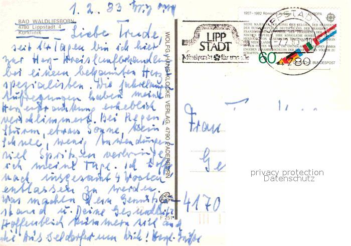 72786425 alte Postkarte Bad Waldliesborn Kurklinik postalisch gelaufen Erhaltung siehe scans [AndreD76] KatCode: 11110005974028