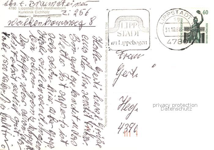 73173940 alte Postkarte Bad Waldliesborn Kurklinik Eichholz postalisch gelaufen Erhaltung siehe scans [NatalD47] KatCode: 11110005974028