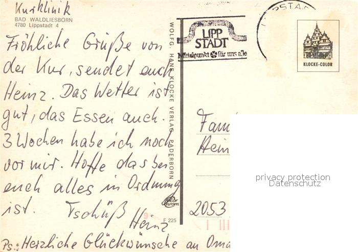 73061182 alte Postkarte Bad Waldliesborn Kurklinik postalisch gelaufen Erhaltung siehe scans [FriedD77] KatCode: 11110005974028