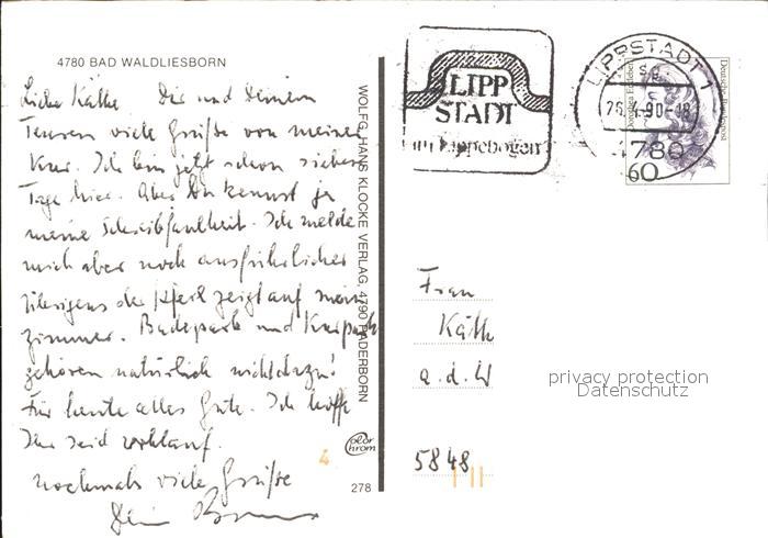 72322503 alte Postkarte Bad Waldliesborn Kurklnik Kurpromenade postalisch gelaufen Erhaltung siehe scans KatCode: 11110005974028