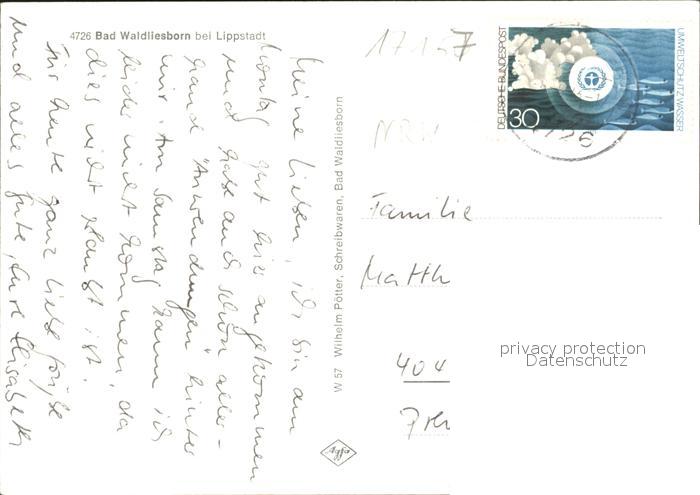 72180129 alte Postkarte Bad Waldliesborn Kurpension Dr. Pluempe Kurpark Kurmittelhaus postalisch gelaufen Erhaltung siehe scans KatCode: 11110005974028