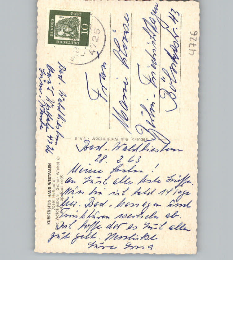 31135111 Bad Waldliesborn Kurpension Haus Westfalen postalisch nicht gelaufen KatCode: