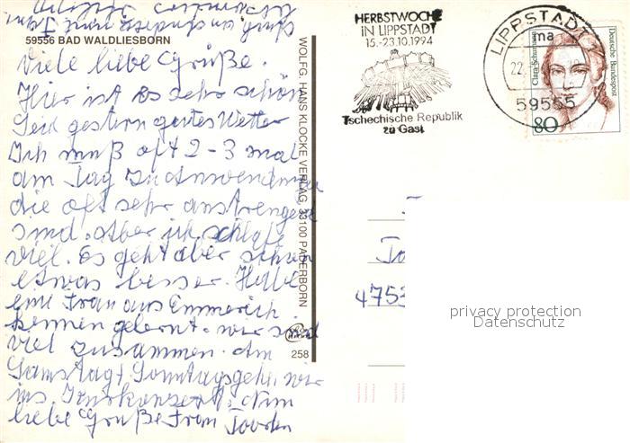 72932474 alte Postkarte Bad Waldliesborn Kurpromenade Eulenpark Vogelhaus Kurzentrum Kurtheater postalisch gelaufen Erhaltung siehe scans [WerneD78] KatCode: 11110005974028