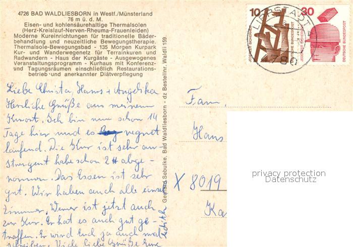 73172581 alte Postkarte Bad Waldliesborn Kurverwaltung postalisch gelaufen Erhaltung siehe scans [FriedD77] KatCode: 11110005974028