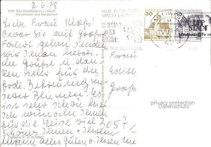 72227667 alte Postkarte Bad Waldliesborn Kurzentrum und Sanatorium Fliegeraufnahme postalisch gelaufen Erhaltung siehe scans KatCode: 11110005974028