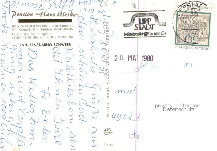 73782684 alte Postkarte Bad Waldliesborn Pension Haus Ulrike postalisch gelaufen Erhaltung siehe scans [FriedD77] KatCode: 11110005974028
