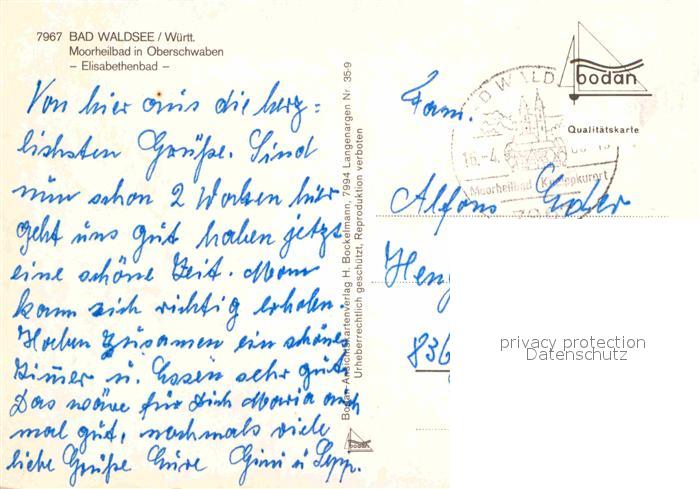 72668415 alte Postkarte Bad Waldsee Elisabethenbad postalisch gelaufen Erhaltung siehe scans [AndreD76] KatCode: 11110008436009
