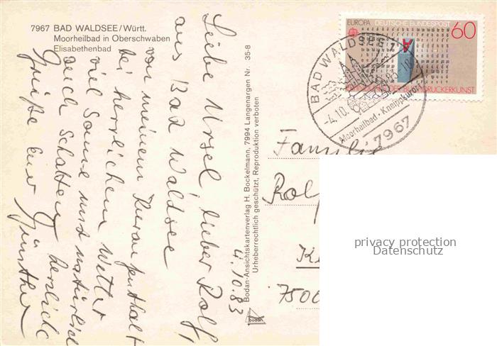 74053277 alte Postkarte Bad Waldsee Elisabethenbad Heilgymnastik Panorama Moorbad Kurhalle postalisch gelaufen Erhaltung siehe scans [WerneD78] KatCode: 11110008436009