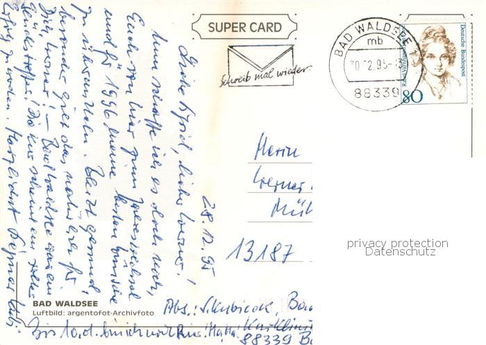 73774724 alte Postkarte Bad Waldsee Fliegeraufnahme postalisch gelaufen Erhaltung siehe scans [WerneD78] KatCode: 11110008436009