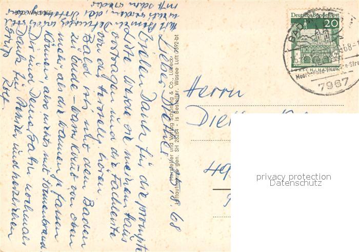 73647406 alte Postkarte Bad Waldsee Fliegeraufnahme postalisch gelaufen Erhaltung siehe scans [WerneD78] KatCode: 11110008436009