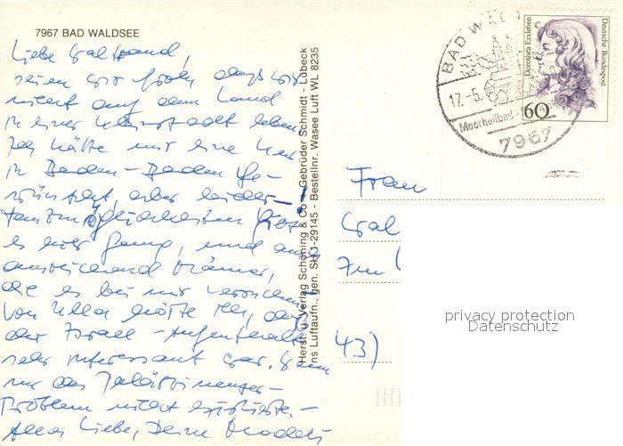 73542039 alte Postkarte Bad Waldsee Fliegeraufnahme postalisch gelaufen Erhaltung siehe scans [WerneD78] KatCode: 11110008436009