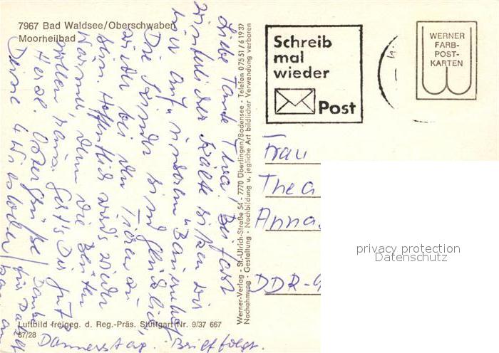 73041178 alte Postkarte Bad Waldsee Fliegeraufnahme postalisch gelaufen Erhaltung siehe scans [WerneD78] KatCode: 11110008436009