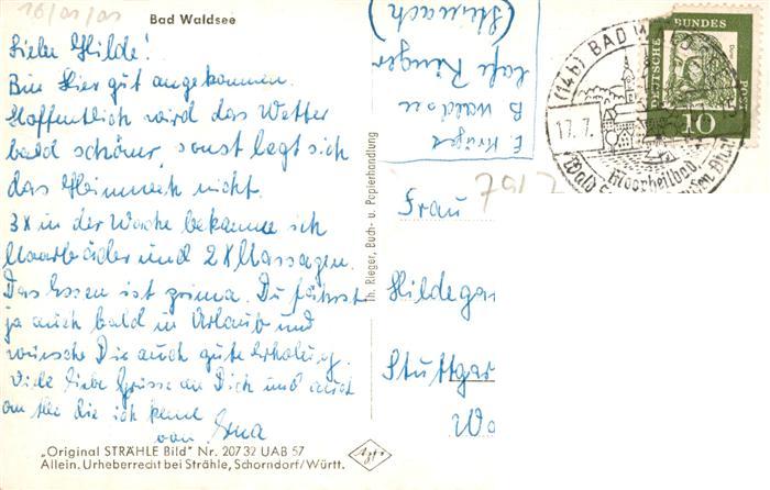 73940676 alte Postkarte Bad Waldsee Fliegeraufnahme postalisch gelaufen Erhaltung siehe scans [WerneD78] KatCode: 11110008436009