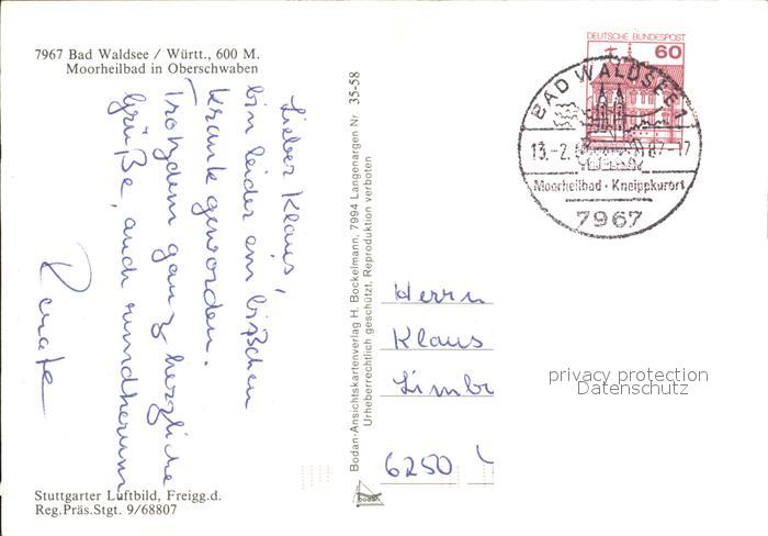 72449256 alte Postkarte Bad Waldsee Fliegeraufnahme postalisch gelaufen Erhaltung siehe scans KatCode: 11110008436009