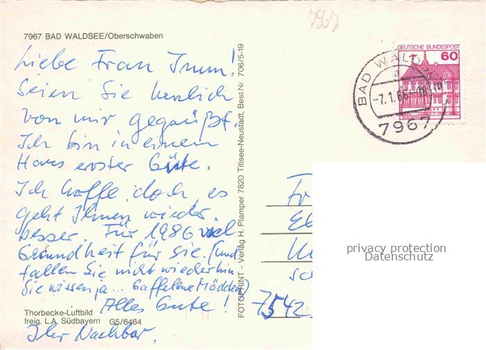 74053325 alte Postkarte Bad Waldsee Fliegeraufnahme postalisch gelaufen Erhaltung siehe scans [WerneD78] KatCode: 11110008436009