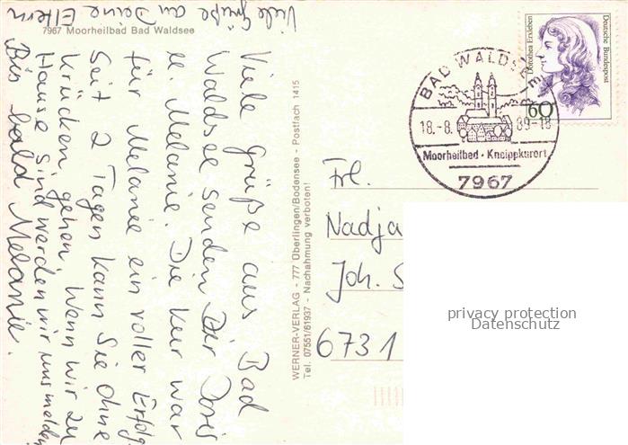74053317 alte Postkarte Bad Waldsee Fliegeraufnahme postalisch gelaufen Erhaltung siehe scans [WerneD78] KatCode: 11110008436009