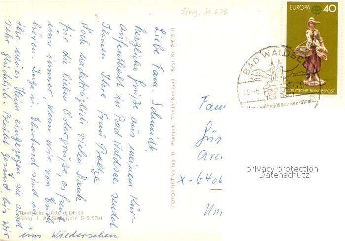 73656622 alte Postkarte Bad Waldsee Fliegeraufnahme Kirche Rathaus postalisch gelaufen Erhaltung siehe scans [WerneD78] KatCode: 11110008436009