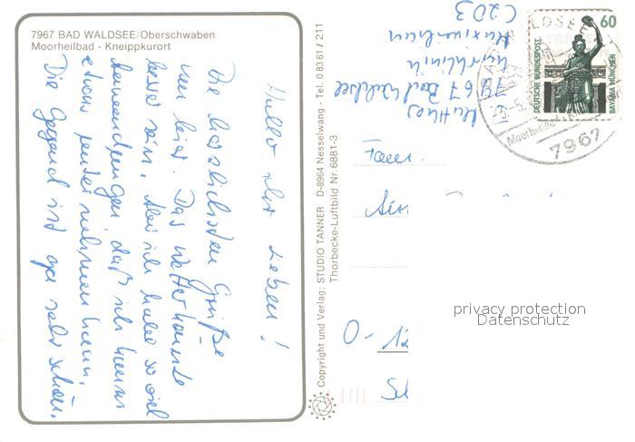 73744937 alte Postkarte Bad Waldsee Fliegeraufnahme Moorheilbad postalisch gelaufen Erhaltung siehe scans [FriedD77] KatCode: 11110008436009