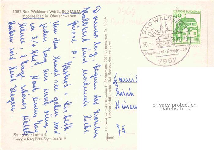 74053370 alte Postkarte Bad Waldsee Fliegeraufnahme Stadtsee Rathaus Wurzacher Tor postalisch gelaufen Erhaltung siehe scans [WerneD78] KatCode: 11110008436009