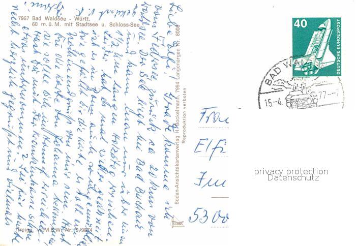 72785529 alte Postkarte Bad Waldsee Fliegeraufnahme Stadtsee Schloss postalisch gelaufen Erhaltung siehe scans [AndreD76] KatCode: 11110008436009