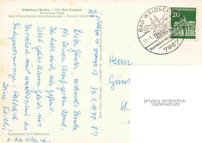 74053324 alte Postkarte Bad Waldsee Gaestehaus Martha Gastraum postalisch gelaufen Erhaltung siehe scans [WerneD78] KatCode: 11110008436009