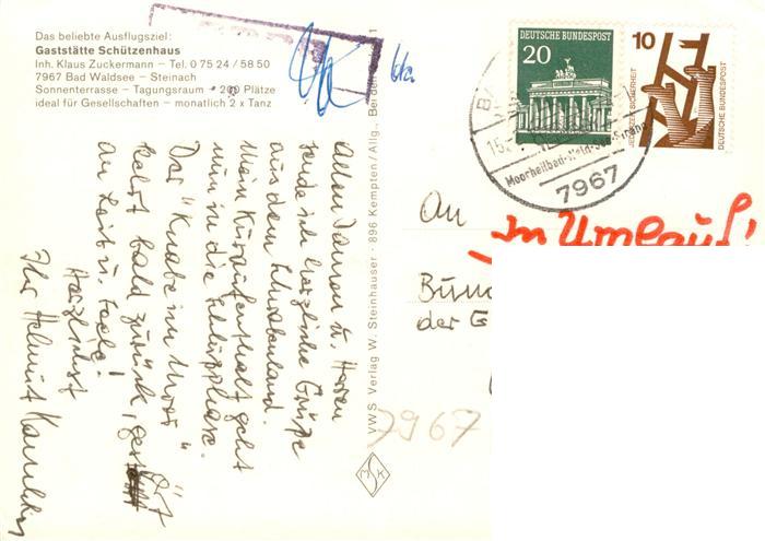 73898145 alte Postkarte Bad Waldsee Gaststaette Schuetzenhaus Kegelbahn Restaurant postalisch gelaufen Erhaltung siehe scans [WerneD78] KatCode: 11110008436009